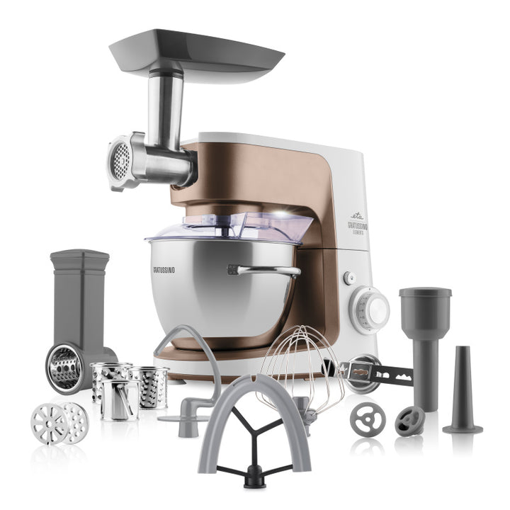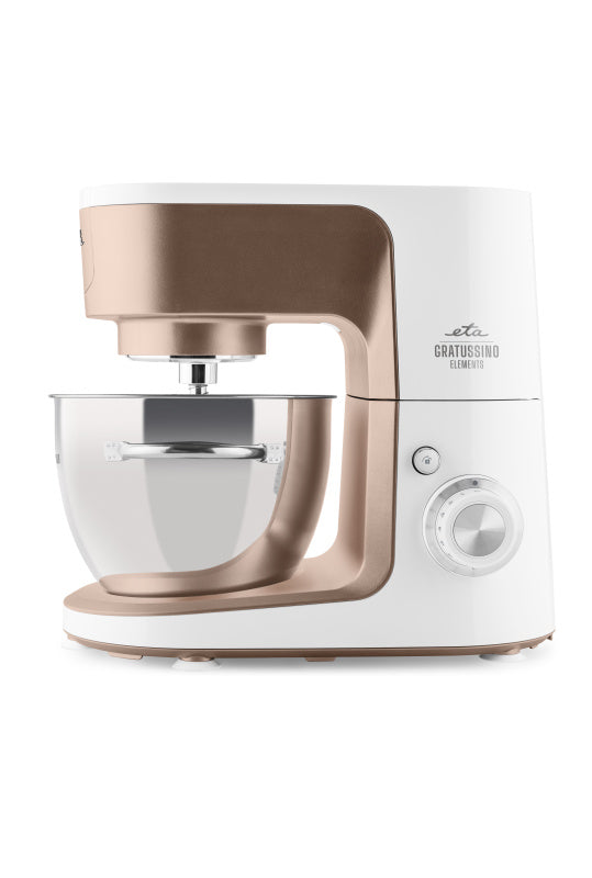 ETA Gratussino III Elements – це кухонна машина зі стильної серії «Elements», який вдихає особливий стиль у кожну кухню. Як і ручні міксери ETA Lento Elements з тієї ж серії, Gratussino III випускається у трьох елементарних кольорах – terra (Земля), sole (Сонце) та luna (Місяць) – натхненних основними елементами нашого життя. Він поєднує в собі позачасовий дизайн, надійність та обладнання, яке не підведе вас навіть під час складнішого приготування їжі.