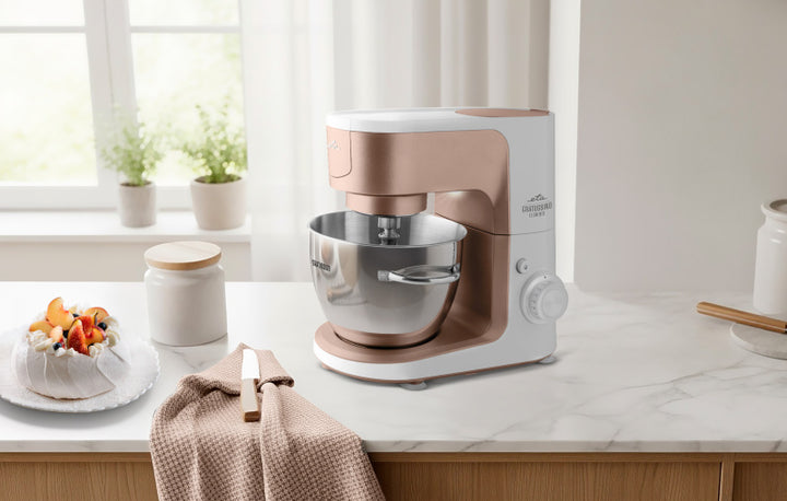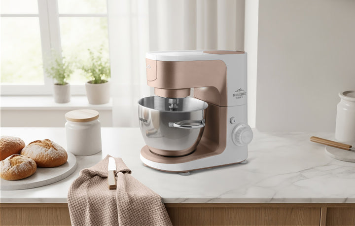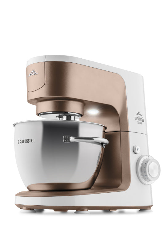 Хоча кухонний комбайн ETA Gratussino III Elements трохи менший за своїх великих побратимів, його не можна назвати незграбним. Потужний двигун потужністю 1200 Вт з тихою роботою та металеві шестерні забезпечують тривалий термін служби та стабільну роботу. Планетарна система змішування рівномірно обробляє всі інгредієнти в чаші з нержавіючої сталі об'ємом 4,5 літра, яка також оснащена практичними ручками та прозорою кришкою.