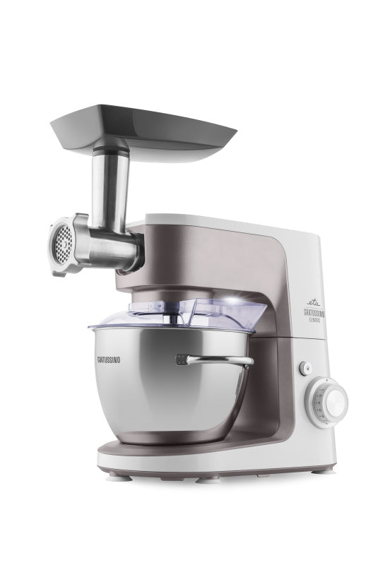 Хоча кухонний комбайн ETA Gratussino III Elements трохи менший за своїх великих побратимів, його не можна назвати незграбним. Потужний двигун потужністю 1200 Вт з тихою роботою та металеві шестерні забезпечують тривалий термін служби та стабільну роботу. Планетарна система змішування рівномірно обробляє всі інгредієнти в чаші з нержавіючої сталі об'ємом 4,5 літра, яка також оснащена практичними ручками та прозорою кришкою.