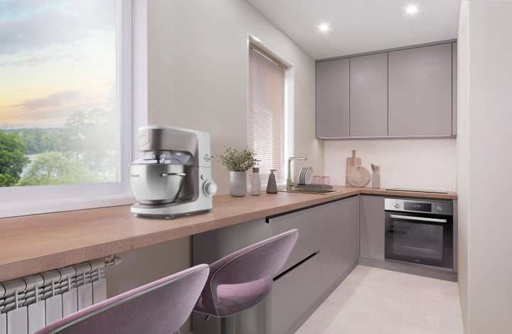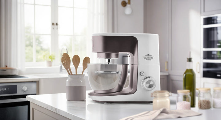 ETA Gratussino III Elements – це доказ того, що кухонний комбайн може бути не лише потужним помічником, а й елементом дизайну. Він підходить як для менших, так і для більших кухонь, де ви оціните не лише його функціональність, але й компактніші розміри та легке керування. Звичайно ж, є також безпечний поворотний кронштейн, протиковзкі ніжки та можливість миття неметалевих частин у посудомийній машині.