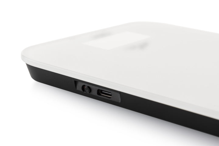 Ви можете використовувати ваги або з вбудованим літій-іонним акумулятором (заряджається через USB-C), або підключеним до мережі (адаптер не входить до комплекту). Індикатори низького заряду батареї та перевантаження вчасно сповістять вас, щоб ніщо не затримувало вас.