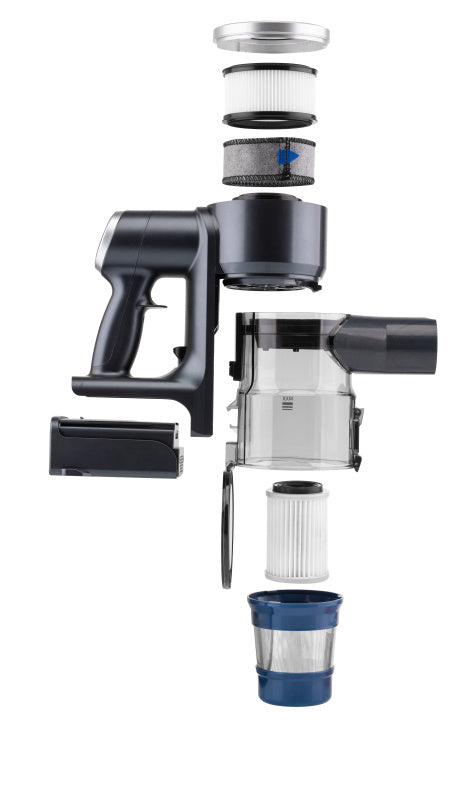 Příslušenství: nabíjecí stanice, polštářová hubice, štěrbinová hubice s kartáčkem 2 v 1