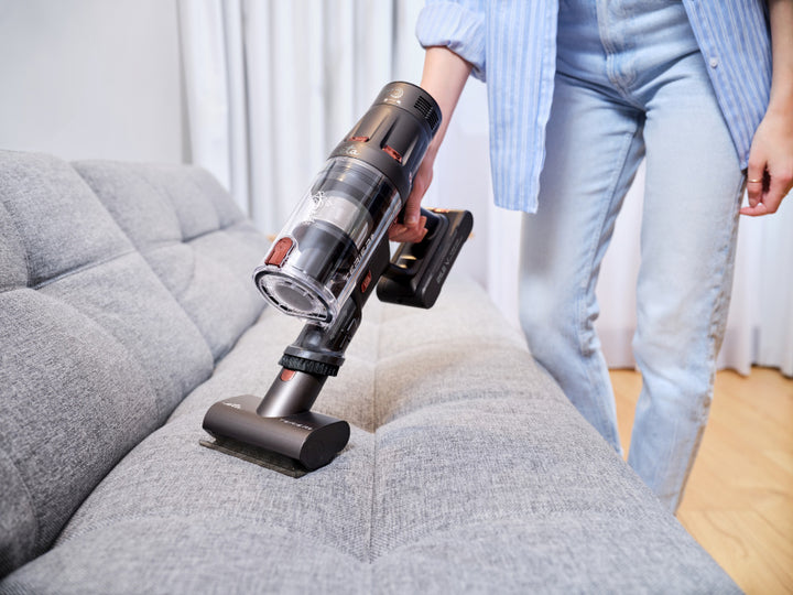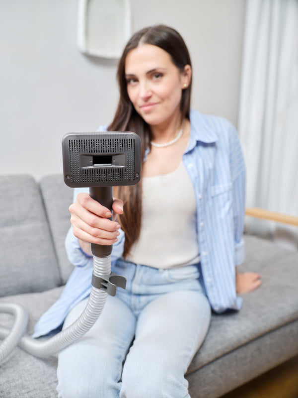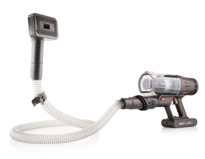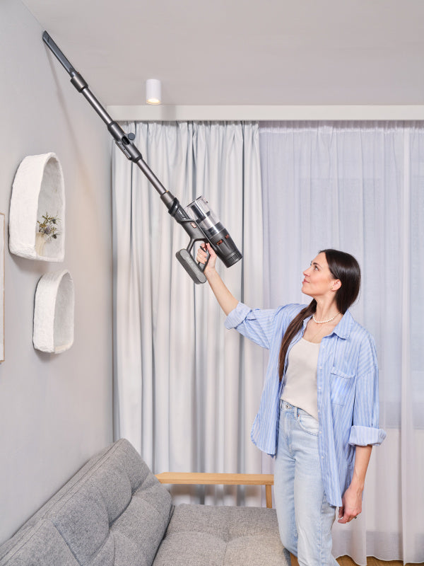 Забудьте про складне маневрування і хвору спину. Завдяки гнучкій шарнірній трубі, яку можна згинати до кута 90°, ви можете легко пилососити під диванами, ліжками або низькими меблями. Маленька турбощітка може обробляти оббивку, матраци або автомобільні сидіння - всюди, де зазвичай залишається волосся.