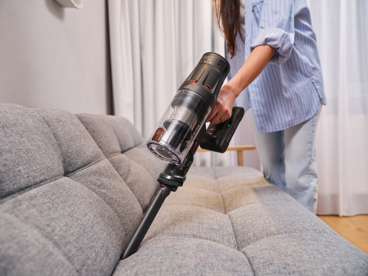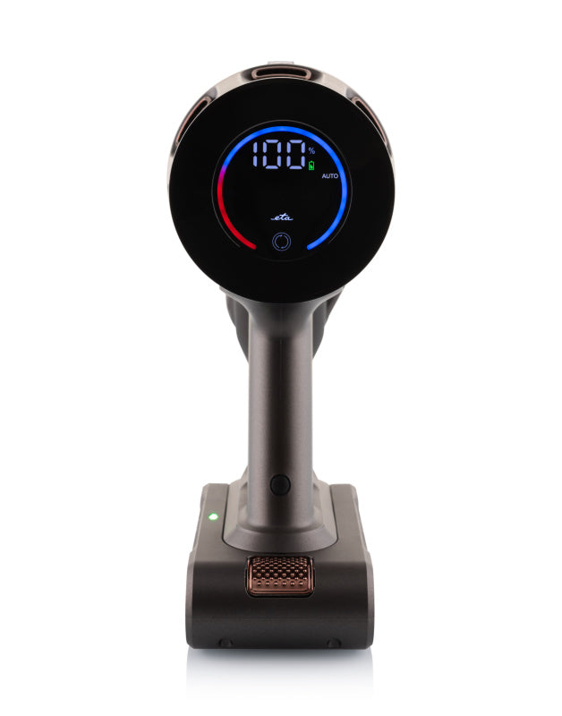 Цьому стрижневому пилососу точно немає чого соромитися, коли мова заходить про час автономної роботи. З ETA Terier ви можете комфортно пилососити до 80 хвилин! Ви можете легко контролювати стан батареї на OLED-сенсорному дисплеї - ви точно знаєте, скільки часу ще можете чистити. Акумулятор дуже легко замінити, тому ви можете мати більше в запасі та продовжувати прибирання, якщо він розрядиться.