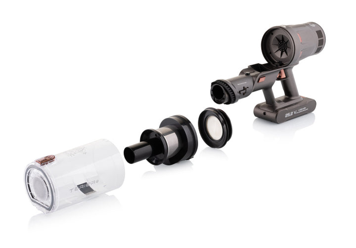 Прибирання — це лише половина справи, інша — догляд за пилососом. На щастя, ETA Terier оснащено безконтактним скиданням бруду, яке є швидким і гігієнічним. Крім того, система подвійної фільтрації, включаючи міцний попередній фільтр із нержавіючої сталі, захищає фільтр HEPA та підтримує ваш пилосос у відмінному стані.