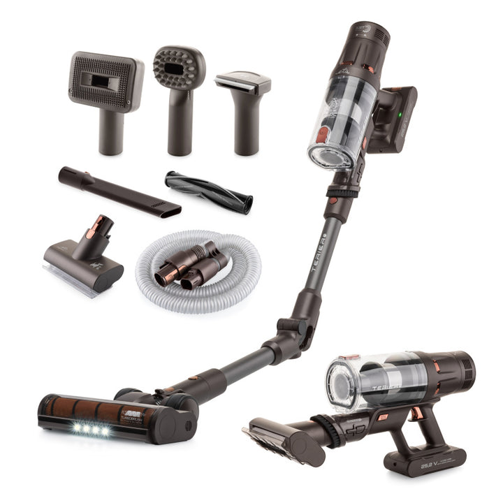 У вас вдома є чотирилапий улюбленець? Тоді ви знаєте, що волосся на дивані, підлозі чи одязі – це постійний виклик. Паличний пилосос ETA Terier спеціально розроблений для легкого, але ефективного обслуговування будинку з домашніми тваринами. Він поєднує в собі функціональність палички та ручного пилососа, а також поставляється зі спеціальним набором для догляду за шерстю домашніх тварин - ваш вихованець і ваш будинок будуть у відмінній формі!